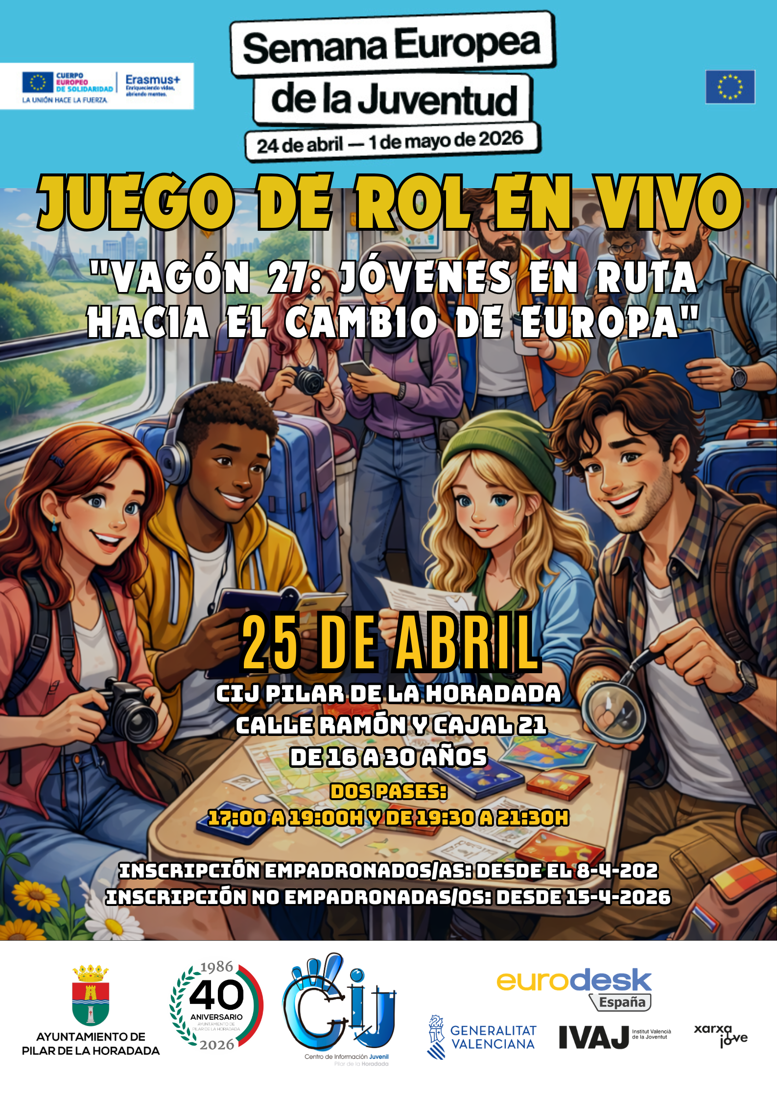 ℹ️Más información en la Concejalía de Juventud- Centro de InformaciónJuvenil. Estamos en C/ Ramón y Cajal, 21. Pilar de la Horadada. Tlf: 966767799 – 652216621.